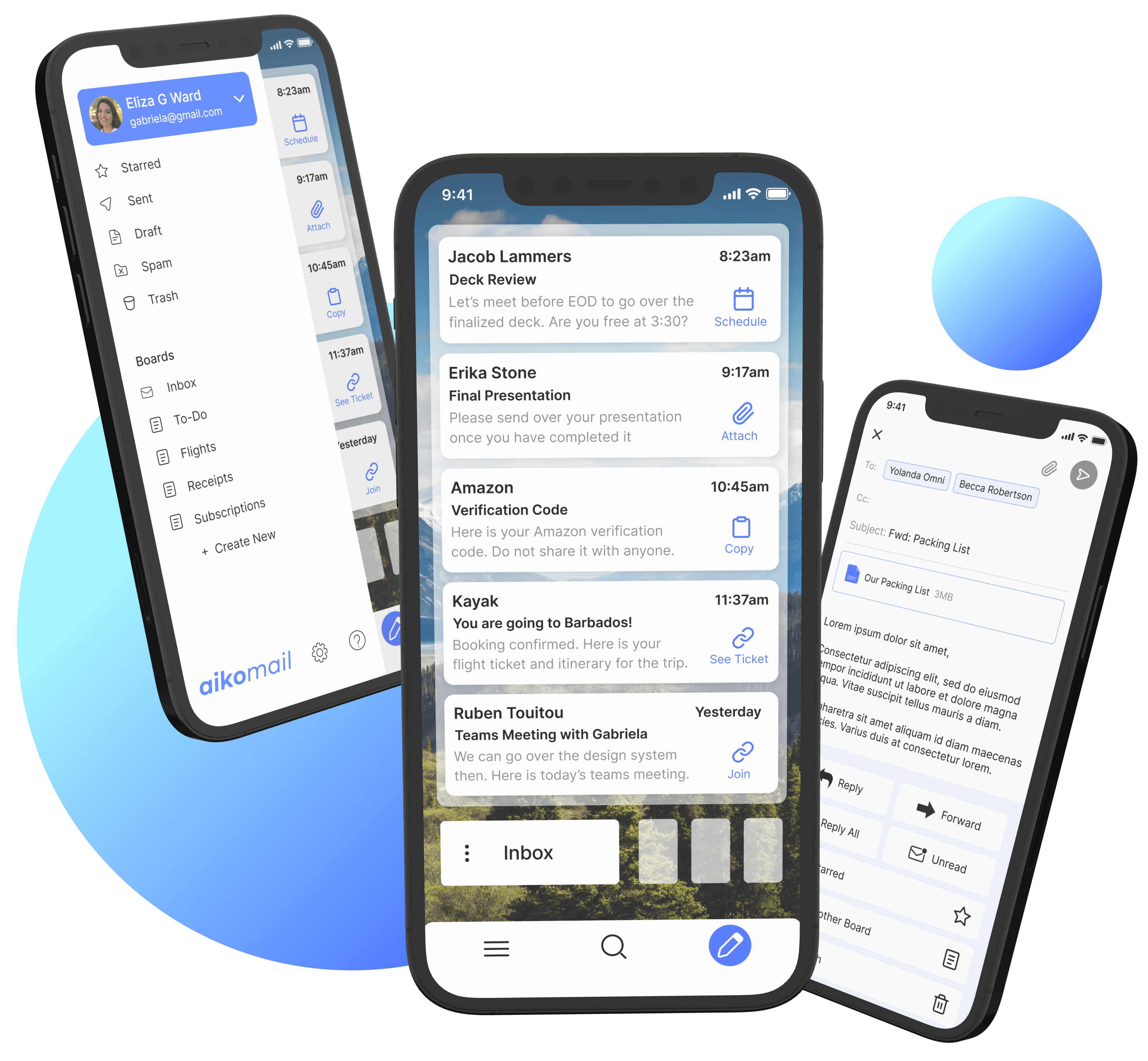 Create a new mobile email experience that is efficient for email usage and implements Aikos AI features